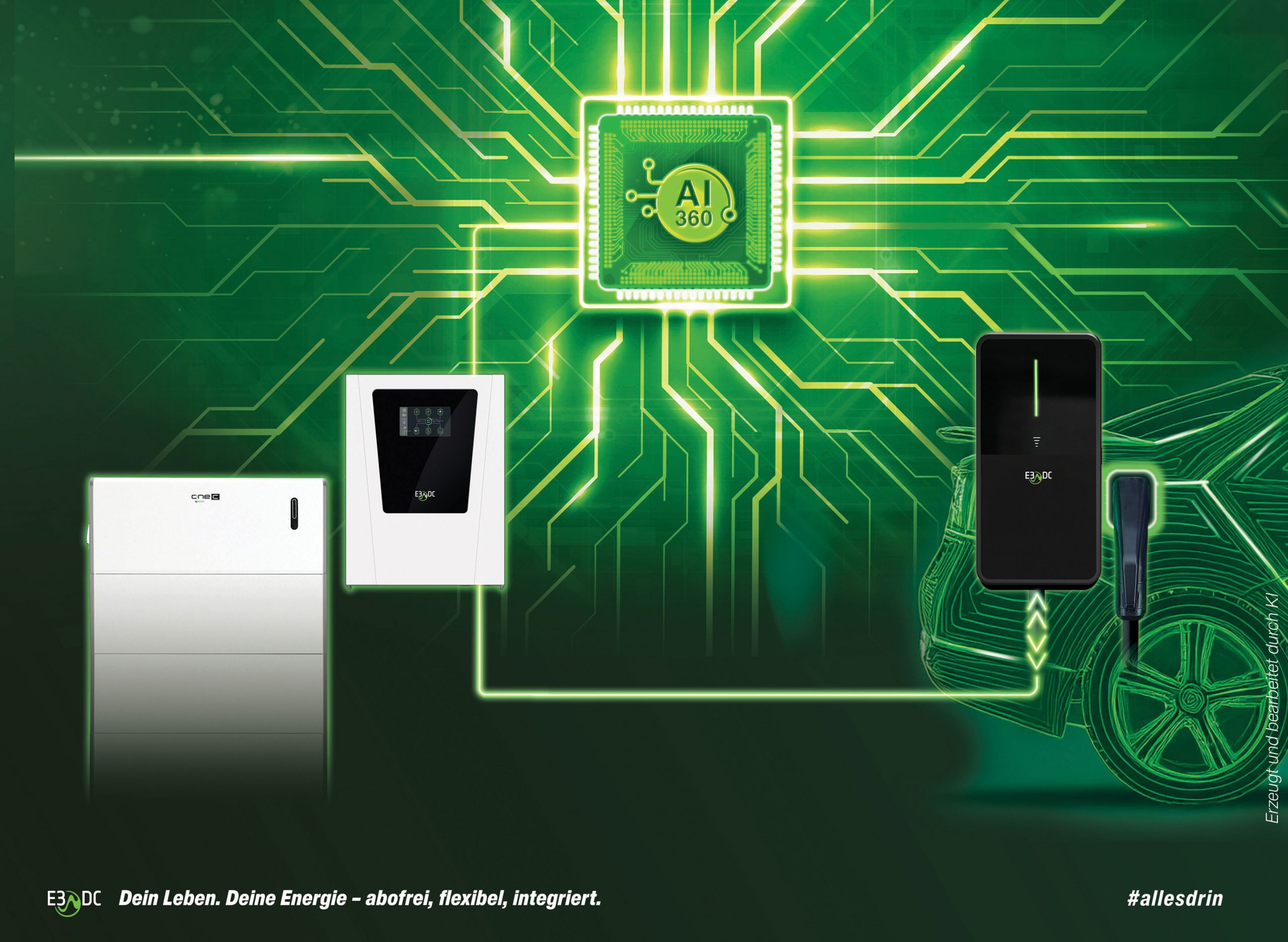 3-fach Energie: Solarstrom + günstige Netzzeiten + Fahrzeugbatterie. AI 360° optimiert alles automatisch.